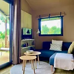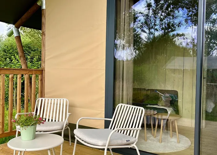 Situated 10 minutes' drive from De Hooge Veluwe, Glamping Hoeve Meijer Otterlo Harskamp villa invites guests to relax at a terrace.